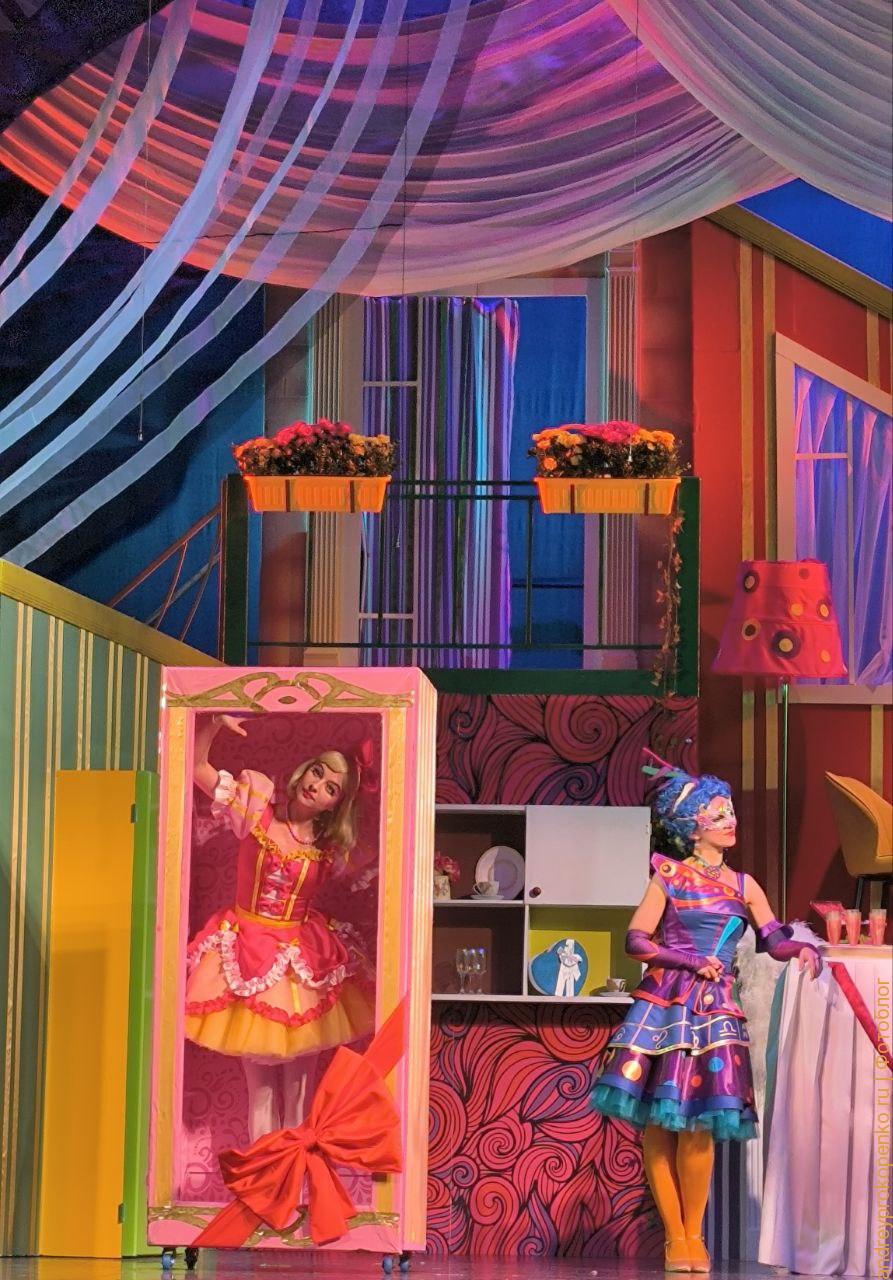 Однако, во втором акте ситуация резко меняется. Происходит “принятие”. Цвета, их сочетания и свет уже не так воспламеняют мозг. А, сюжетная линия окрашивается логичностью добавляя шарма вовлекает в процесс. Шутки звучащие на сцене смешны уже всем. Эмоции зарождающиеся в артистах волнами расходятся по залу цепляют зрителей.